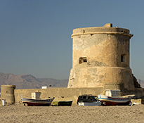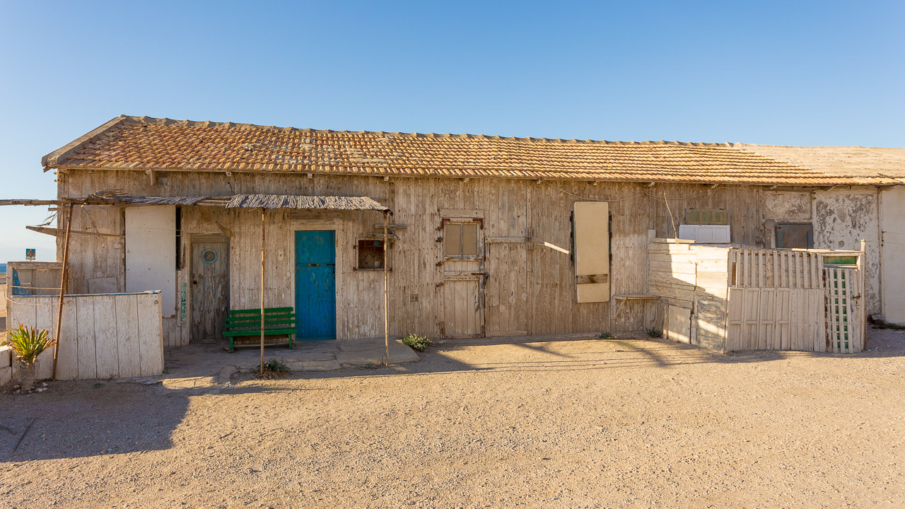 Entorno: Se encuentra junto a las salinas de Cabo de Gata en mitad de la playa de Las Salinas.